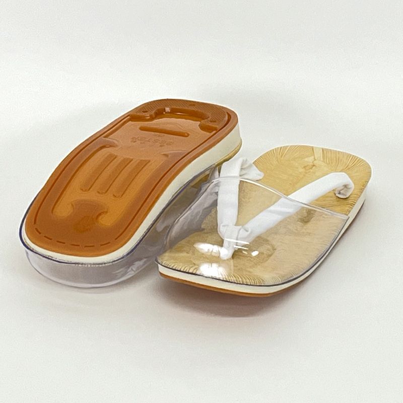 雨天用の「時雨履き」や足の大きい方用に3Lサイズまで揃えています。紳士和装の最上位は畳表に白鼻緒とされ、いわゆる雪踏(せった)になります。雪踏と言えば革張り底のものでしたが、使い勝手の良さと履きやすさからウレタン材やキルク材を底材に使用した履物が主に使用されています。畳表、白鼻緒なら底材を問わず礼装として使用していただけます。こちらではこのように社寺で使用される礼装用から普段履きの履物をご用意しております。