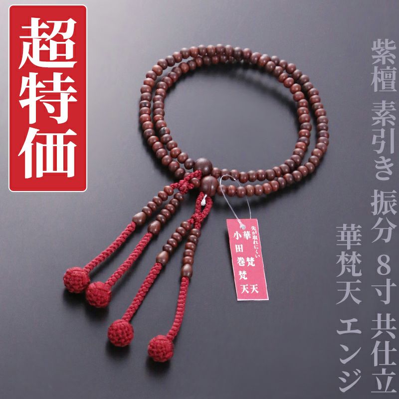 【超特価】紫檀 素引き 振分 8寸 共仕立 華梵天 エンジ