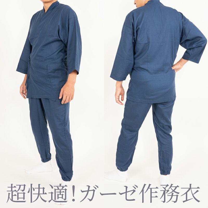 「和晒」製法によってより柔らかい綿100%のガーゼとなっています。使い込むほどに柔らかく、肌に馴染む作務衣は外での作業の他に、普段着としても使用出来るほどに使い心地がよくなっていきます。また丈夫で擦れなどによる毛玉も出来にくい良質な生地です。