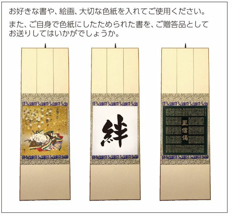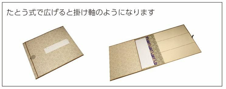 掛軸台は寺院で使用される大きな掛軸から一般家庭で使用されるサイズまで対応しています。また色紙額や色紙や絵手紙を手軽に掛軸として飾っていただける「たとう掛け」も掲載しております。
