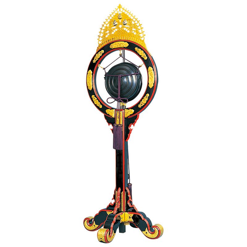 鉦鼓 黒漆塗面朱漆塗 火焔付 撥・紐付 鉦直径16.5cm(特製、最上 2種類)