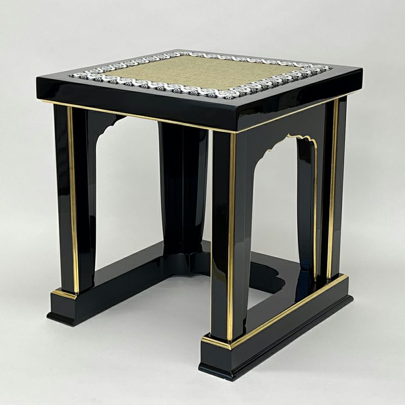 一般寺院では、阿弥陀如来を天蓋や宮殿厨子でかざり須弥壇上に乗せ、須弥壇上には上机を設置して常灯明や茶湯器および燭台ならびに香炉などの供養具を供えます。須弥壇前の大前机には、香炉を中心として、燭台、常花(じょうか)を配置し、大前机には長方形の打敷を掛けます。導師用に法要時は高座を、平常時には二畳台を使用します。