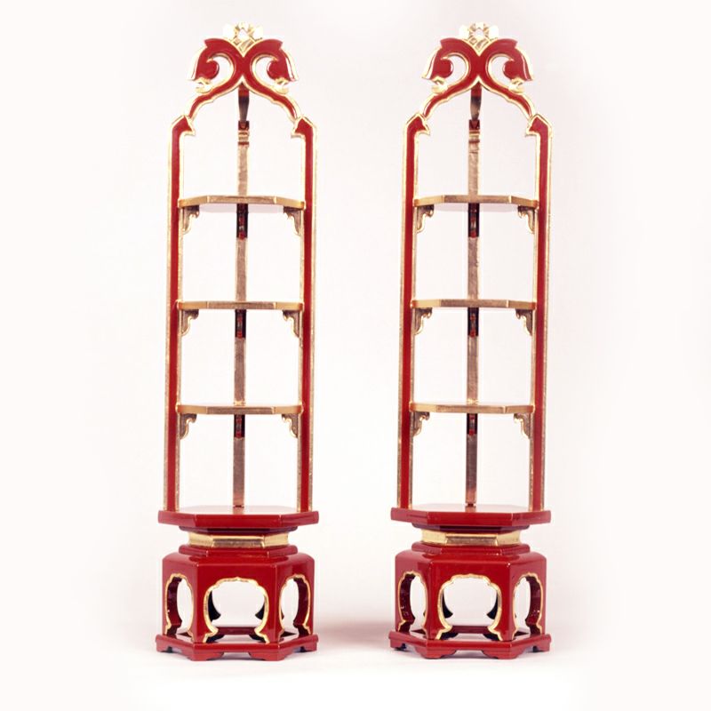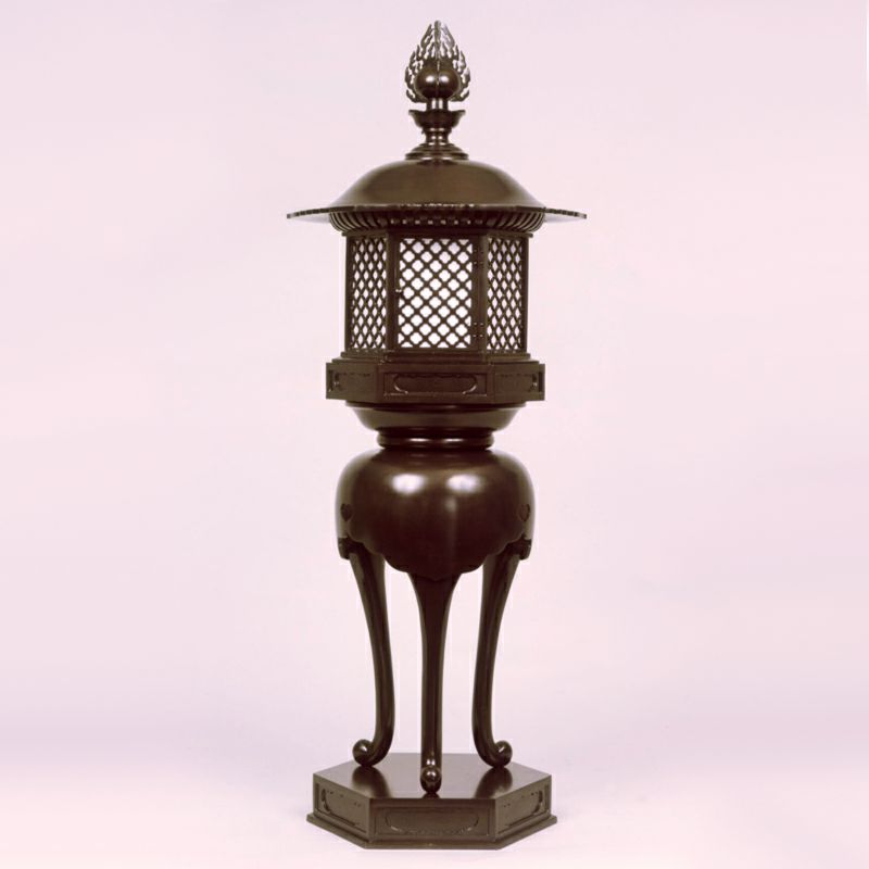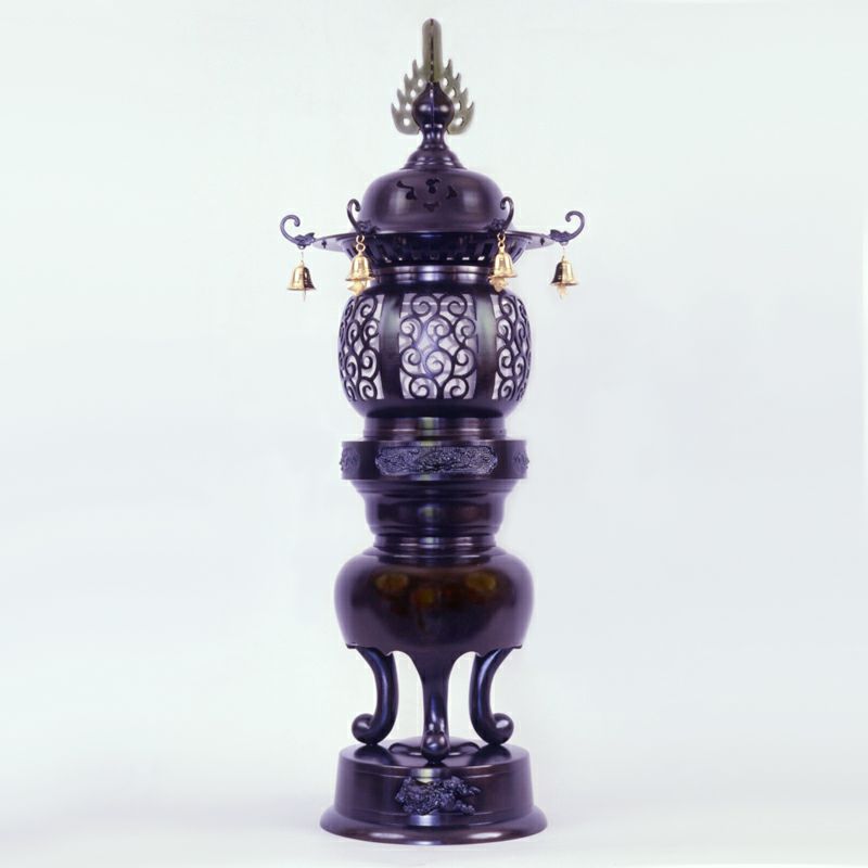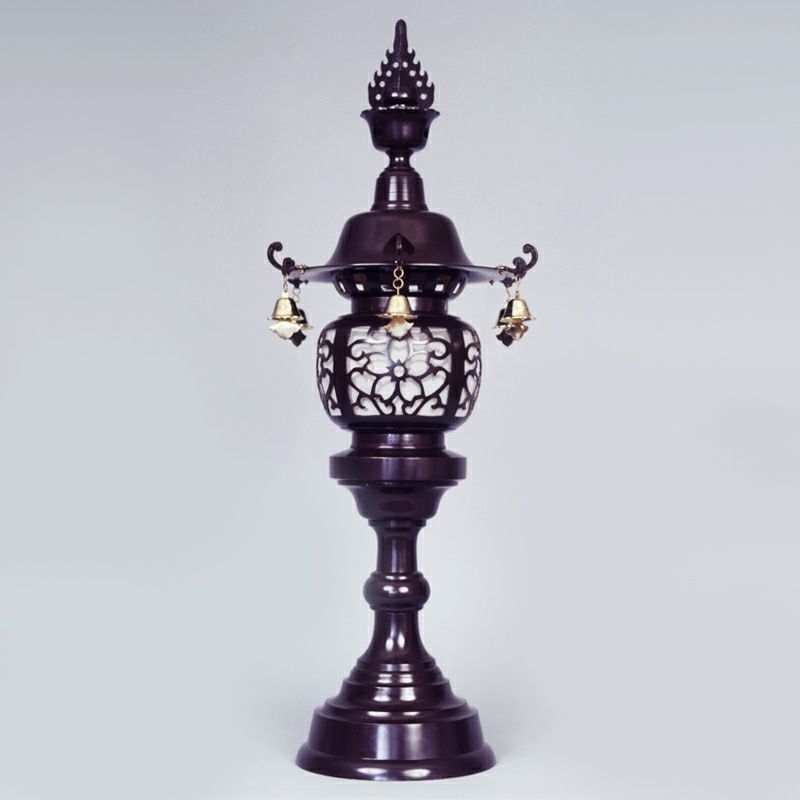内陣中央に設置された須弥壇上には、宝灯(ほうとう)〔台灯籠〕を置き本尊に灯りを供え、火焔飾りのついた常灯明を備える寺院もあります。