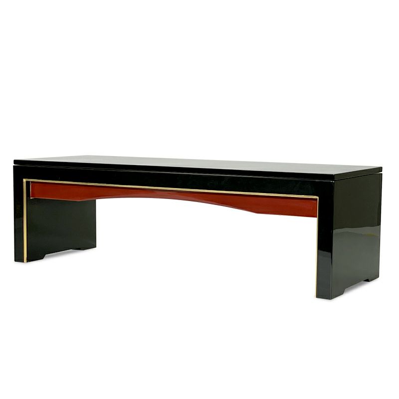 アクリル板はプラスチック樹脂製の板で、具足などを設置することによって卓〔机・案〕天板の漆面に傷がつかないように保護するためのもので、黒色や透明色をご用意しています。黒色は蝋燭が垂れても縮まないように耐熱性を持たせております