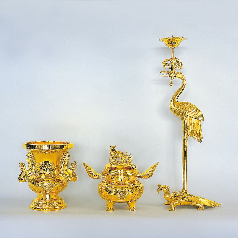 三具足〈割桐型〉 御本山様式 真鍮製 磨き 花瓶口径24cm(高田派)