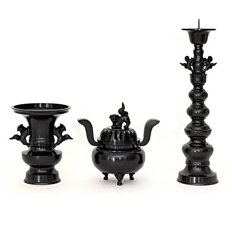 三具足 花瓶丸型獅子掛 真鍮製 色付(花瓶口径15cm~30cm 6種類)