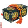 御伝鈔箱〈巻物用〉 青貝入 定紋付 内部金箔押 正絹紐付 別誂 卯兵衛印 内寸長さ36cm、幅17cm(大谷派)