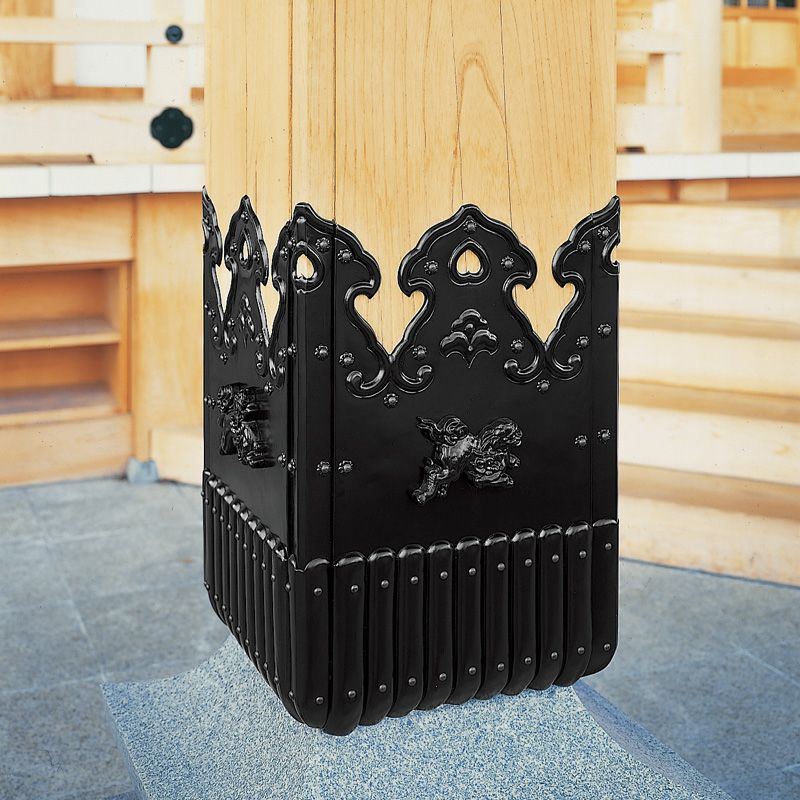 柱根巻金具 角柱用 四方獅子入 銅製打物製 黒色仕上 角柱1辺24cm(各宗派)