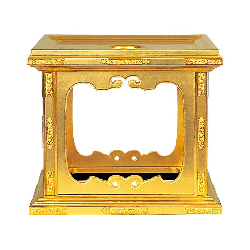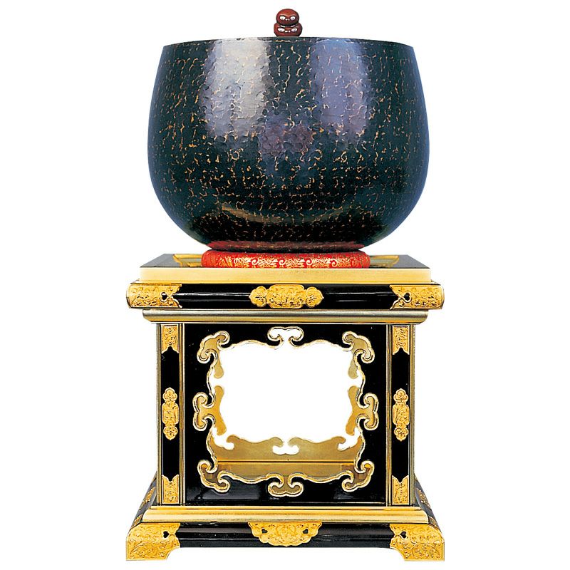 古来鏧は礼盤の畳の上に置かれていましたが、外陣に降ろされると旧来の作法を保つため礼盤型の台が設けられました。