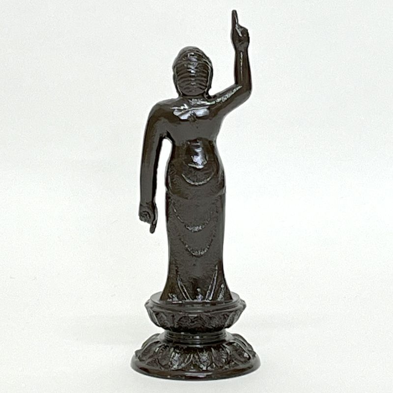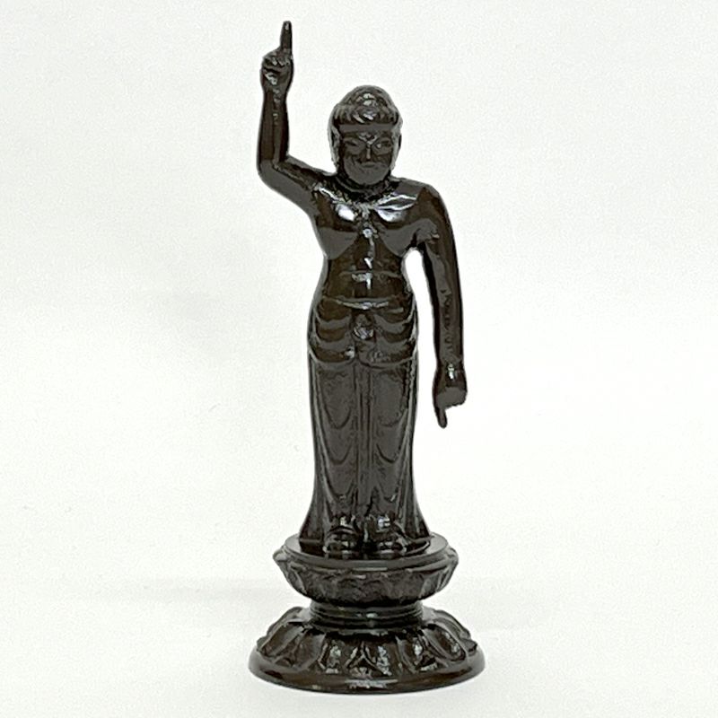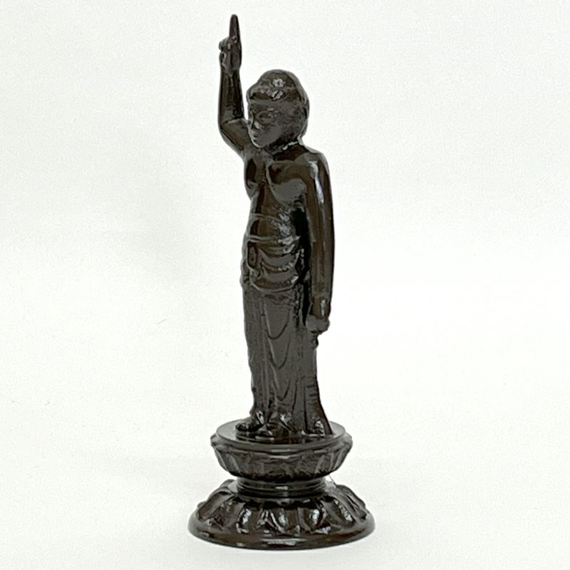 この儀式は、釈尊誕生時の故事に因んだ風習です。ある日釈尊の母摩耶夫人(まーやふじん)は白象が自分の体内に入ってくる夢を見て、目が覚めると受胎していたといいます。摩耶夫人の右脇から生まれた釈尊は、誕生と同時に七歩歩み、右手の人差し指を天空に向け、左手の人差し指を地面に向け、「天上天下唯我独尊(てんじょうてんげゆいがどくそん)」と言葉を発し、その時に天から龍が降りて香湯をかけたとも、二頭の象が両脇から水をかけたとも言われています。日本では、承和7年(840)に宮中で灌仏会が勤められ、以後寺院に普及していきましたが、現在のように甘茶を注ぐようになったのは江戸時代からと言われています。