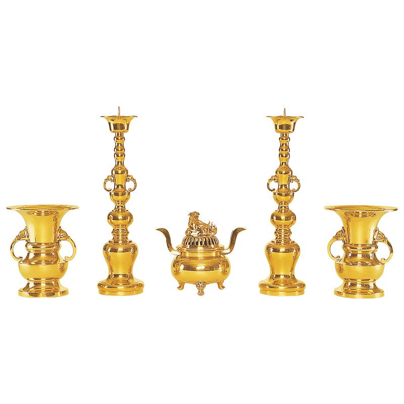 供養具は、香炉と花立および蝋燭立をセットにした具足、香供養具である香合や香炉、華供養具の仏華松、灯供養具である菊灯や輪灯、照明の用途も兼ねた灯籠や照明灯などの仏具が含まれているほか、飲食供養具の仏飯器や、餅および果物を供える供笥(くげ)、須弥盛なども同じカテゴリーとしてこちらで扱っております。