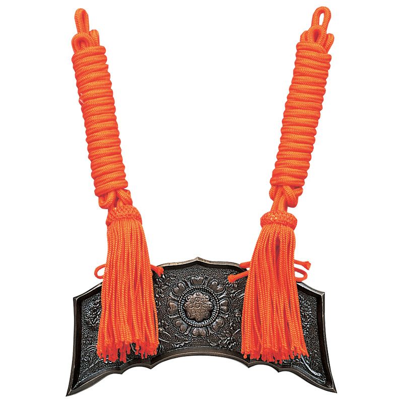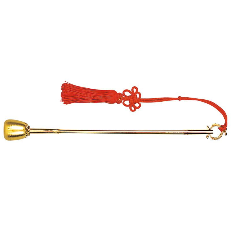磬とは、元来中国発祥の、複数の石を台に吊るした打楽器のことを言います。やがて玻璃(はり)〔ガラス〕や金属の磬も出現し、8世紀には現在見るような金属製の磬が確認されています。磬は磬台に吊るし、導師の座る礼盤の右側に設置されます。