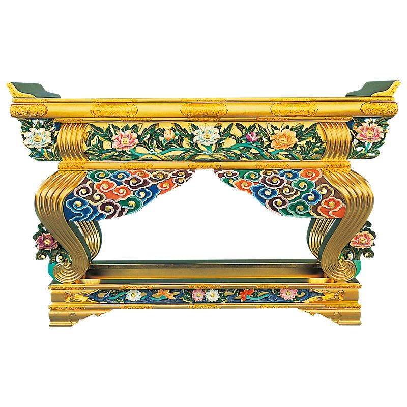 御影堂型前卓 牡丹雲彫刻入極彩色仕上 最上 横幅152cm(高田派)