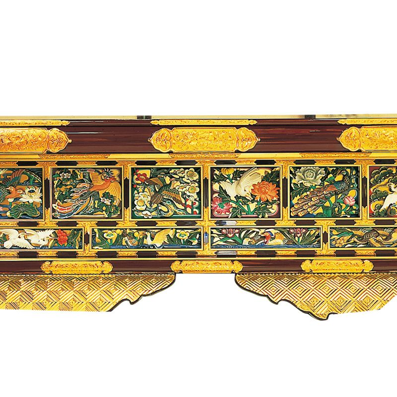 六鳥型前卓 腰六鳥彫 純金箔押 最上 横幅167cm(本願寺派)