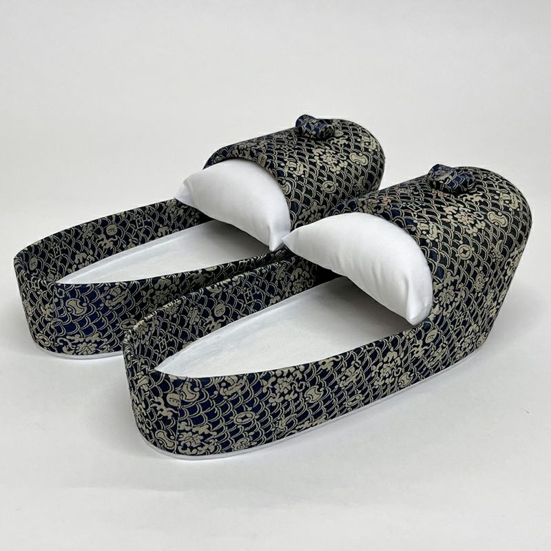 浅沓は古来から使用されている履物で、貴族が衣冠束帯(いかんそくたい)の際に履いていました。貴族が騎馬の時に使用する「深沓(ふかぐつ)」に対して「浅沓」と呼ばれ、木製で作り、外部を黒く塗り、内部を布張りで仕上げます。やがて僧侶の履物として僧具のひとつに取り入れられ、庭儀(ていぎ)など屋外の履物として使用しますが、仏堂内では使用しません。