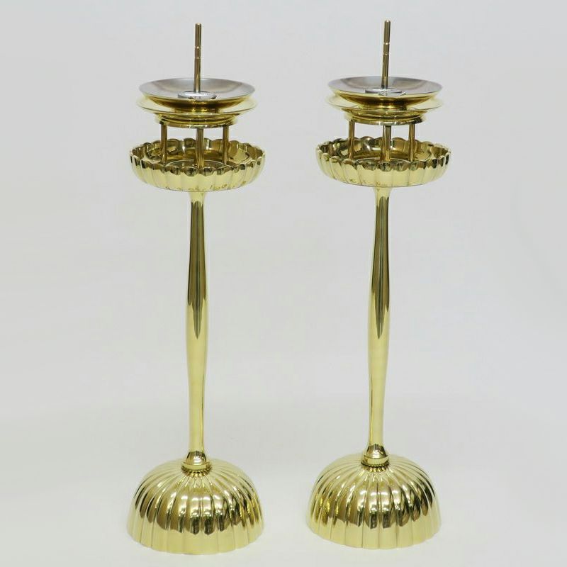 菊壇灯 真鍮製 磨き 雲手油皿付(上皿高さ約23cm、上皿高さ約30.5cm 2種類)