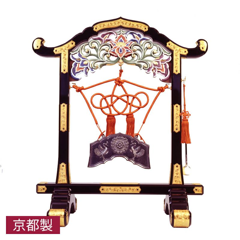 磬台(磬架台) 宝相華彫刻入 黒塗または朱塗 純金箔押 金具打 柱内間隔33cm