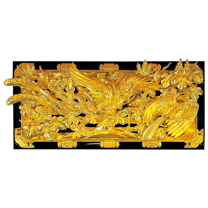 欄間 桐に鳳凰彫刻入 本漆塗 純金箔押 框金具打 極上 基準寸法横幅157cm(各宗派)