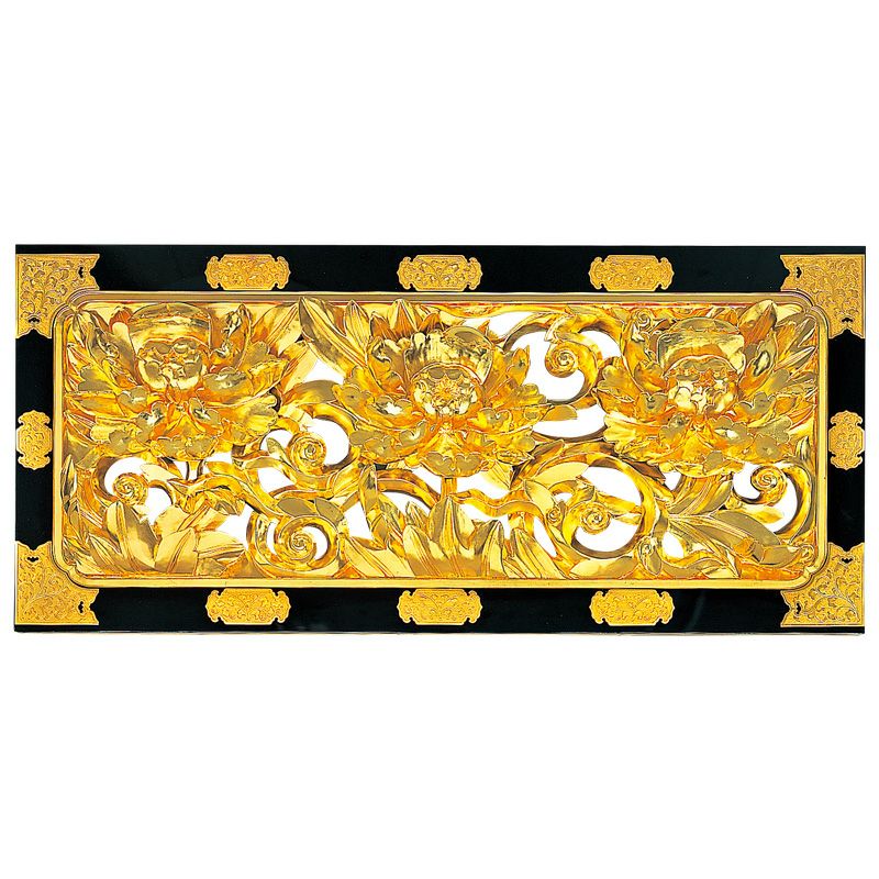 欄間 御本山様式 牡丹唐草彫刻入 框金具打 最上 基準寸法横幅170cm (佛光寺派)