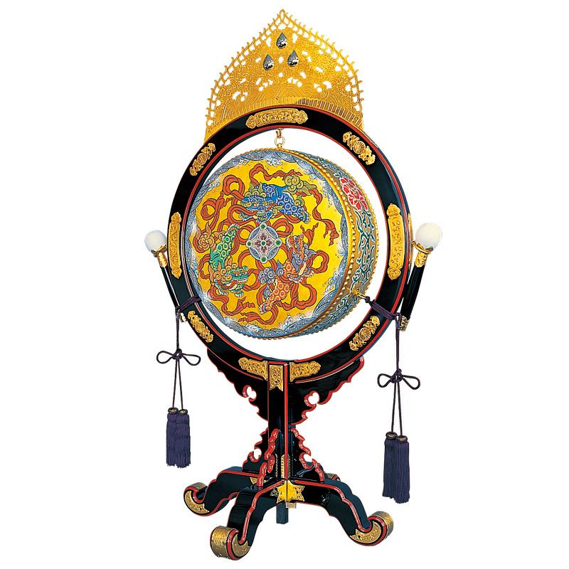 楽太鼓 胴牡丹唐草彩色入 台金具打 撥・紐付 最上(太鼓径39~61cm 8種類)