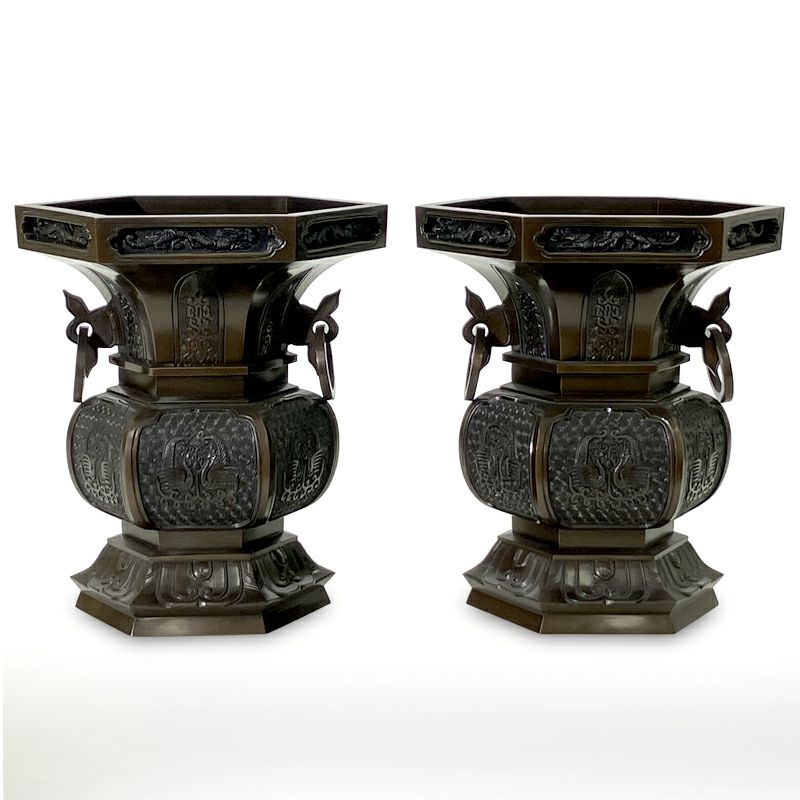 【アウトレット】花瓶 御本山様式 六角型 別製最上 蝋型鋳造 本願寺派 花瓶対辺21.5cm