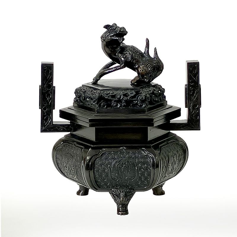【アウトレット】香炉 花瓶六角型用 色付 最上 唐金製 本願寺派 胴直径17cm