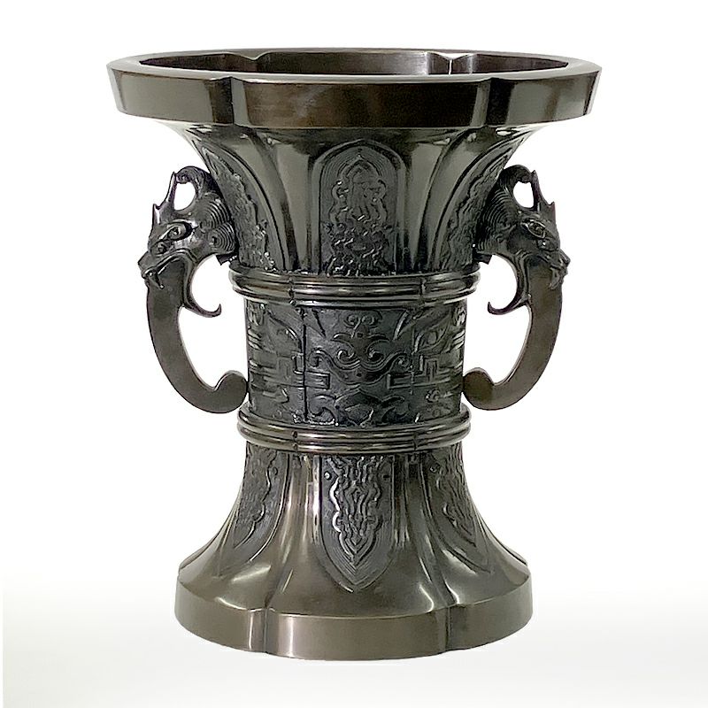 【アウトレット】花瓶 菖蒲型 最上 唐金製 本願寺派 花瓶口径22cm