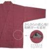 現在の作務衣は作業がしやすいように、前合わせの上着とズボンのセパレートで構成され、袖やズボンのすそには絞りがつけられていて、埃などが入らないように作られています。