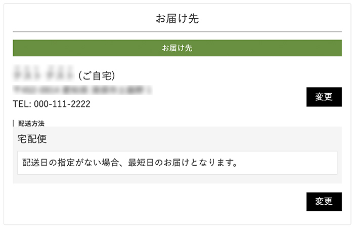 「商品」、「お客様情報」、「お届け方法」、「お支払い方法」にお間違いがないか確認後、「注文を確定する」ボタンをクリック。※間違いがある場合は、「変更」ボタンをクリックして修正お願いします。