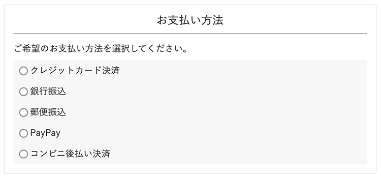 「クレジットカード」、「銀行振込」、「郵便振替」の中からご希望のお支払方法を選択。