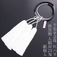 珠の間隔が広くなると糸が切れる兆候という話を以前念珠屋さんに聞きました。私の半装束も少し広くなってきたので購入を検討。法要中に切れるととんでもないので時間のあるときにちょこちょこと探して、このショップにお願いしました。普段使いとして使用するので、人絹房で十分。見栄えを考えて25匁の房にしました。在庫が切れて、注文が重なっているということで3週間ほど待ちました。もう少し早いといいですね。 -